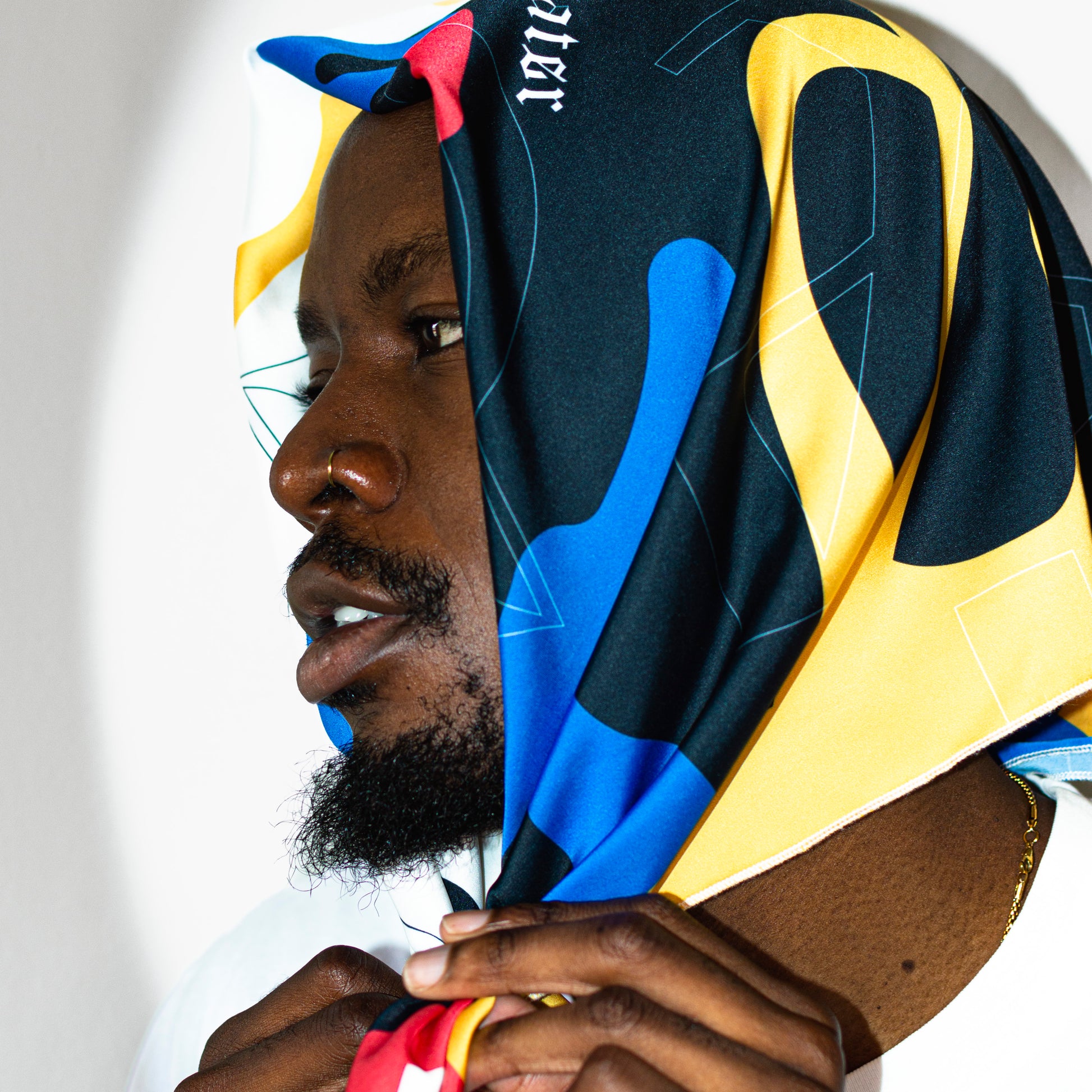 A unique look of the Kreateor logo inspired by primary colours in abstract forms. This bandana offers a new item to add to your accessory arsenal by working with any style of your choice, from head wrap to pocket square.